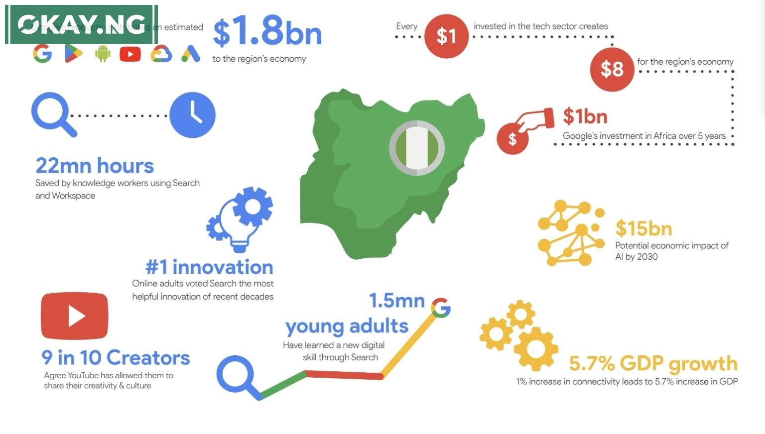 In 2023, Google’s products and services—including Search, Ads, YouTube, and Cloud—contributed an estimated $1.8 billion in economic activity in Nigeria, significantly boosting the productivity of businesses, creators, and workers across the country.