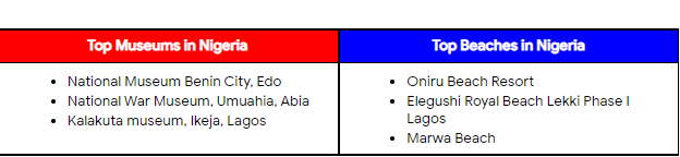Here are the lists of the top clicked on museums, beaches and points of interests in Nigeria over the past twelve months: