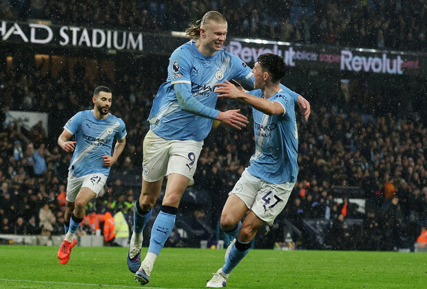 Erling Halaand scores his 153rd goal to equal Manchester City legend, Colin Bell in the all-time scoring charts. Photo: GettyImages