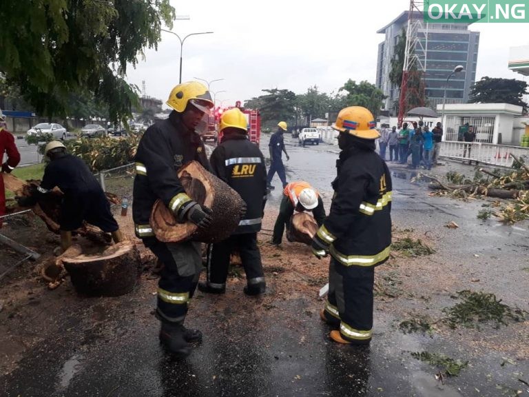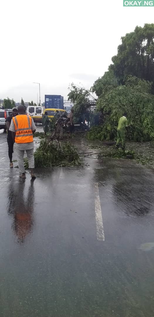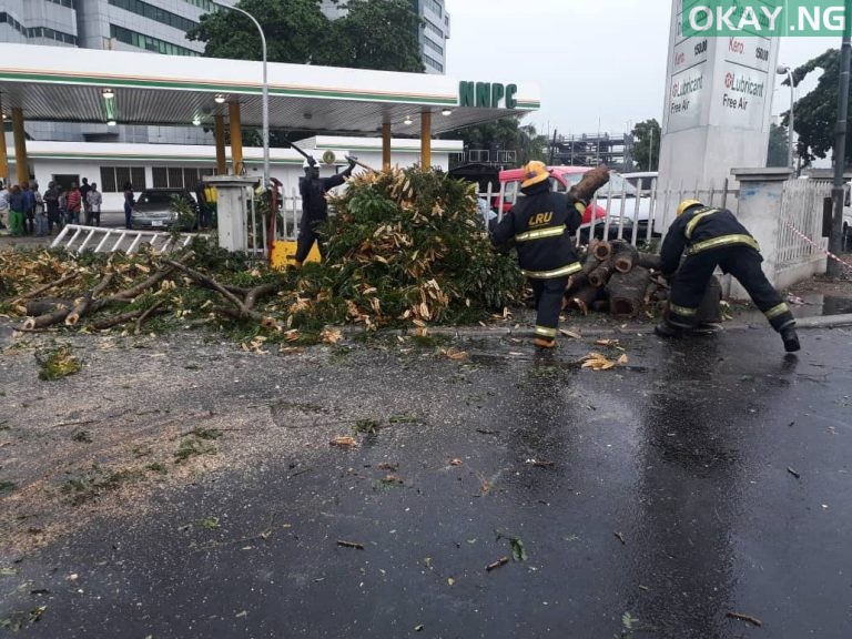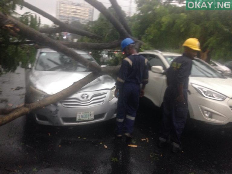 Some trees were seen uprooted resulting to falling on cars in Ikoyi part of Lagos.