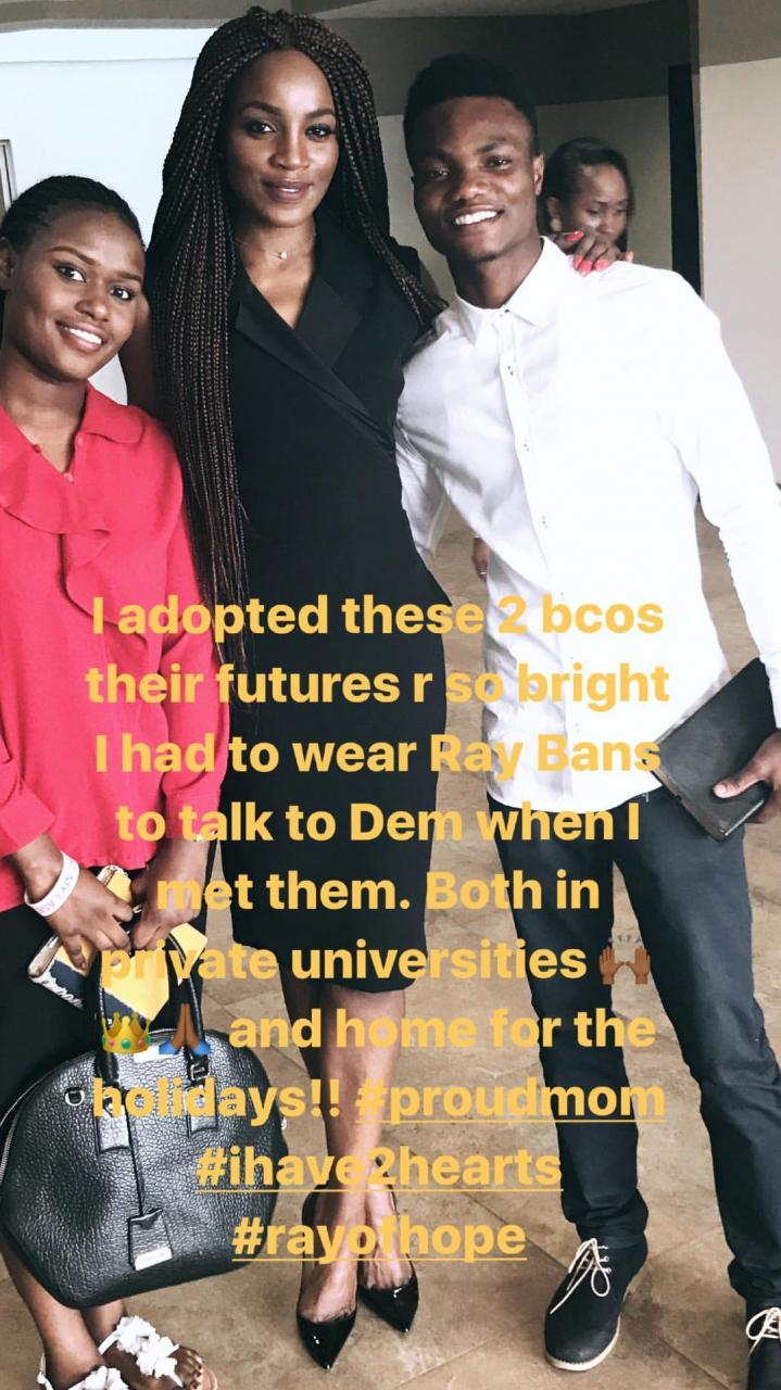 According to the proud mum, she adopted them because their future is so bright – she says both of them, a boy and a girl, are in private universities and are just home for the holidays.