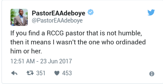 Pastor Enoch Adejare Adeboye, general overseer of the Redeemed Christian Church of God (RCCG) has said all his ordained pastors are humble.