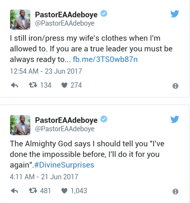 According him, If you find a RCCG pastor that is not humble, then it means I wasn’t the one who ordained him or her Adeboye who made this known on his twitter handle said he still iron his wife’s clothes.