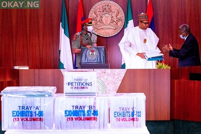 Receiving the Report of the Judicial Commission of Inquiry on the Investigation of Ibrahim Magu, Acting Chairman of the Economic and Financial Crimes Commission (EFCC), headed by Justice Ayo Salami (Rtd), at State House, Abuja, President Buhari said:
