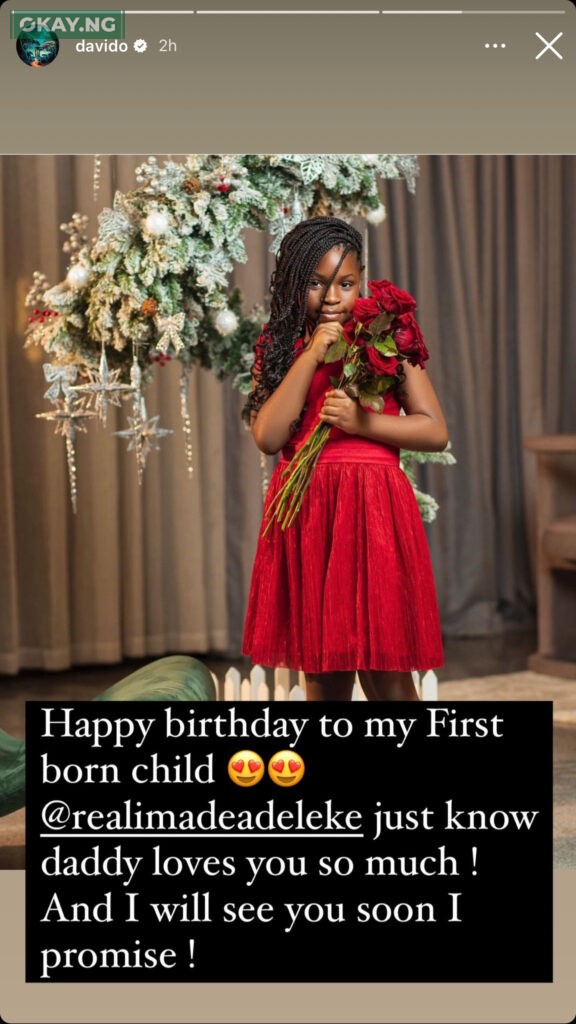 “Happy birthday to my First born child @realimadeadeleke just know daddy loves you so much! I will see you soon I promise,” Davido wrote alongside a photo of Imade.