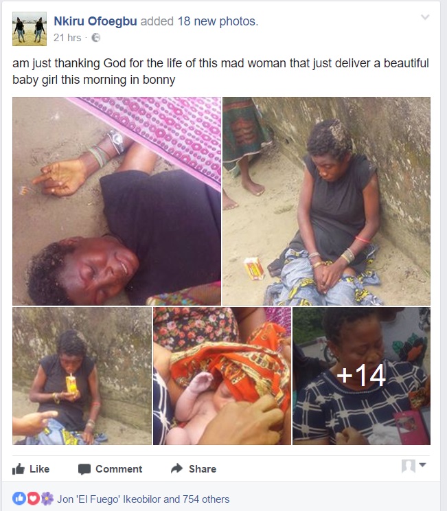 The Facebook user captioned with; am just thanking God for the life of this mad woman that just deliver a beautiful baby girl this morning in bonny