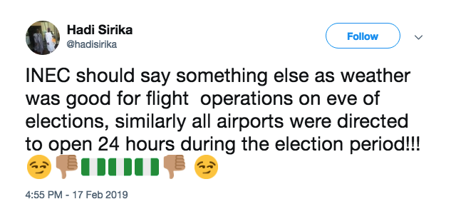 He said, “INEC should say something else as weather was good for flight operations on the eve of elections, similarly all airports were directed to open 24 hours during the election period.”