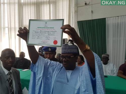 The Independent National Electoral Commission (INEC) on Monday presented Certificate of Return to the Zamfara State Governor-elect, Bello Matawalle and Deputy Governor-elect, Mahdi Gusau.