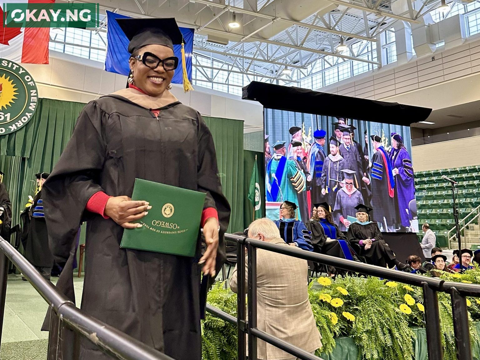 Nwagu, who serves as the Group Head of Business Development for FBN Insurance Brokers in Lagos, traveled to Oswego in December 2024 for her graduation ceremony, where she had the opportunity to meet President Peter O. Nwosu, a fellow Nigerian and the first African-born leader of the institution.