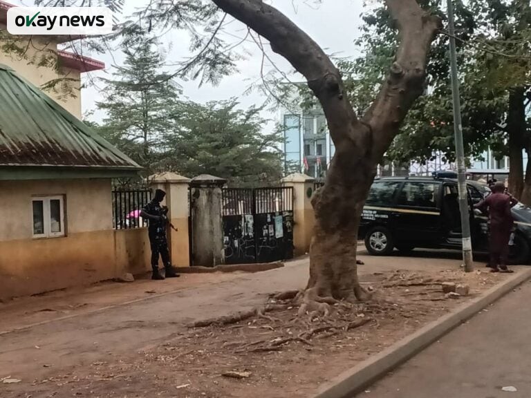 Okay News reports that journalists who visited the secretariat in Utako, a district in Abuja, saw armed police officers stationed within and around the premises.