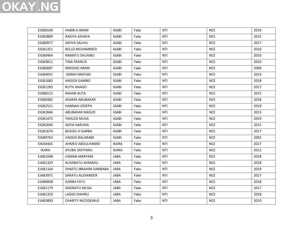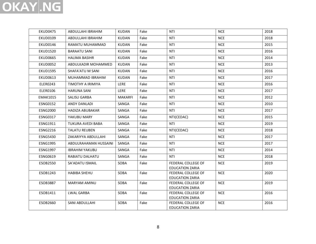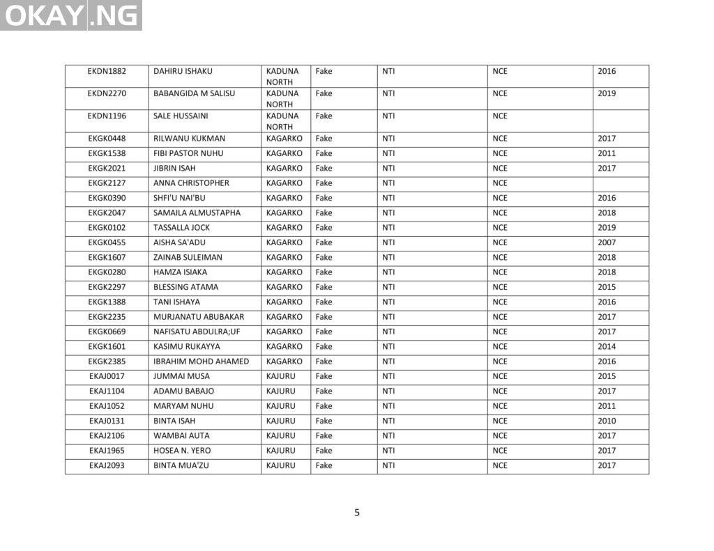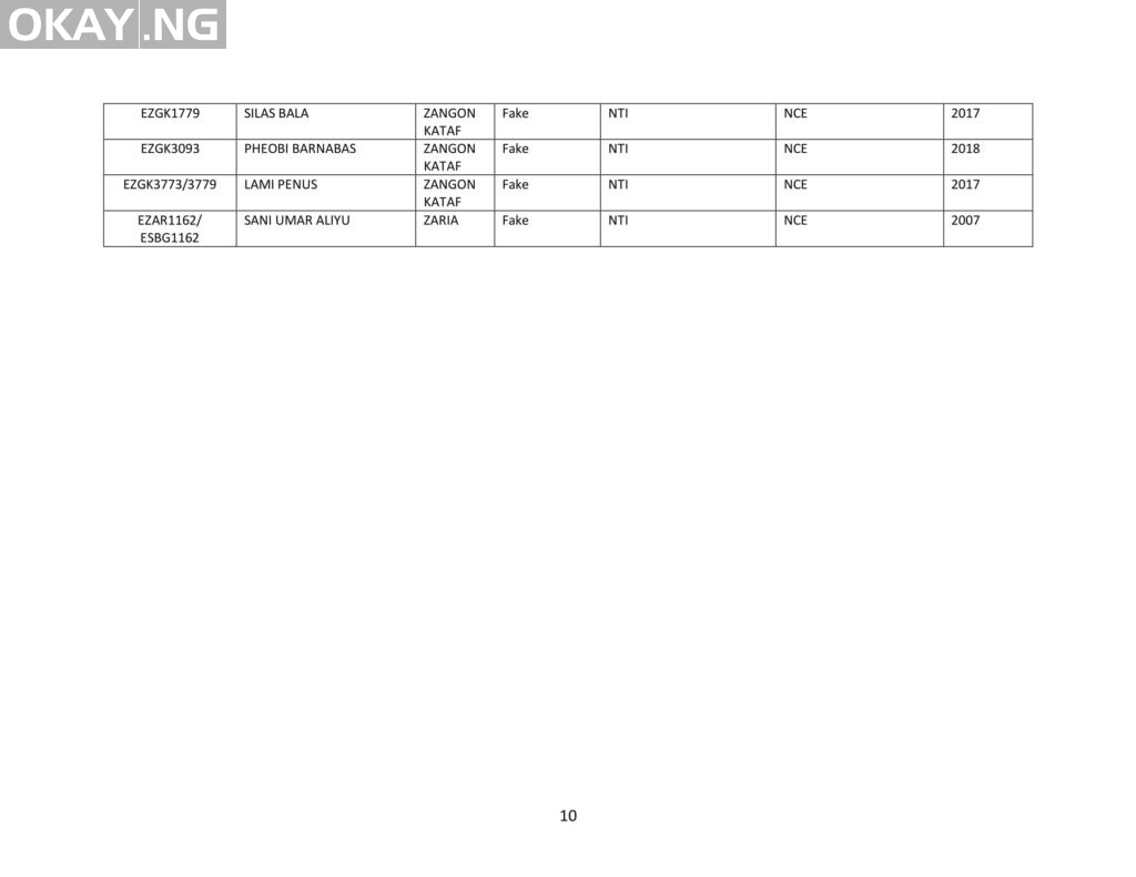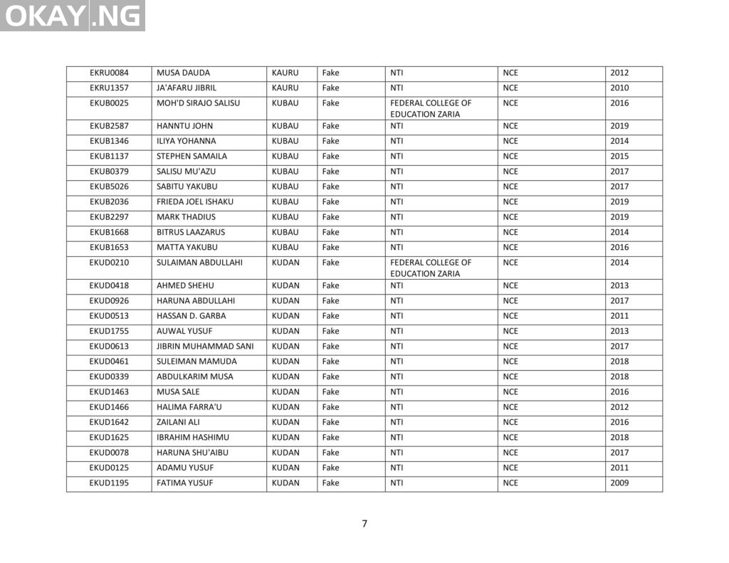 The Kaduna State Government has released the full list of 233 teachers to be dismissed for presenting fake certificates to get employed.