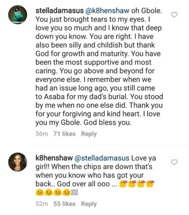In her response to Kate Henshaw, Damasus admitted to being ‘childish’ during the course of their beef. Now she says the olive branch Henshaw has offered moved her to tears.