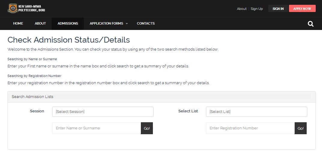 The management Kenule Beeson Saro-Wiwa Polytechnic (KENPOLY) formerly Rivers State Polytechnic (RIVPOLY) wishes to inform members of the public that it has released its Higher National Diploma (HND) and National Diploma Programmes (ND) full-time and part-time admission list for the 2017/2018 academic session.