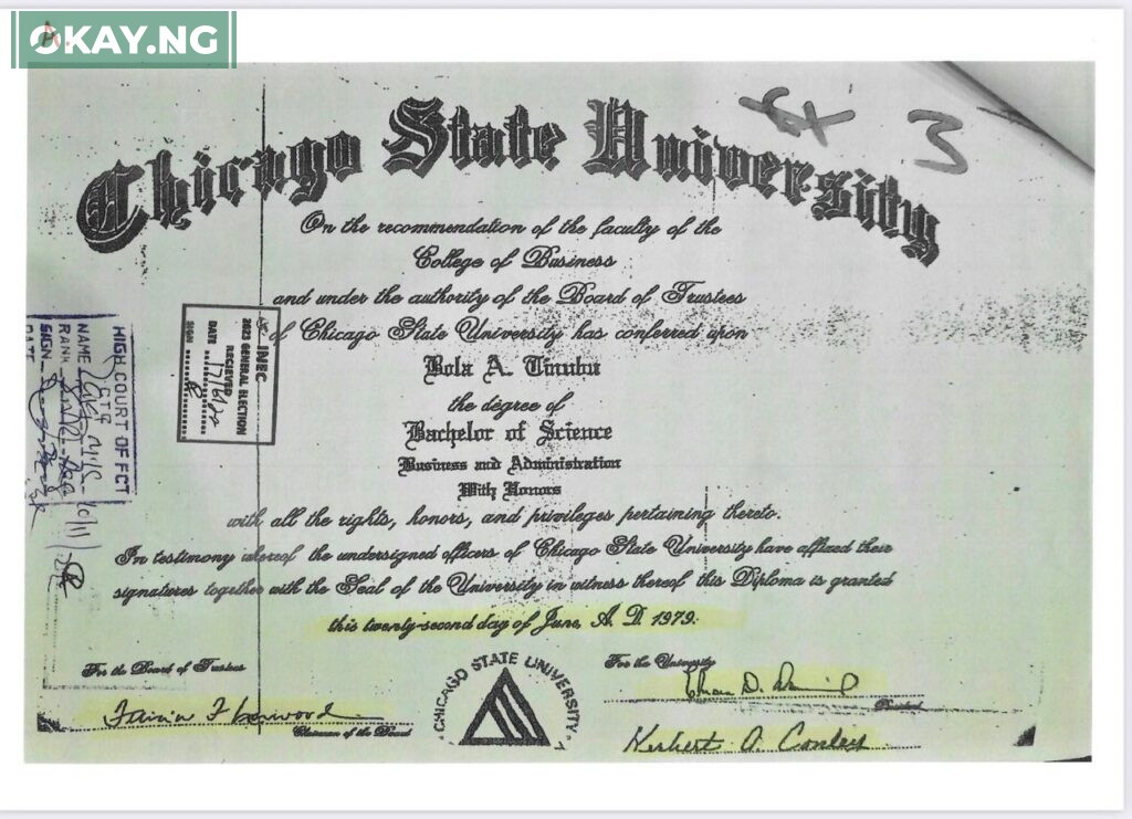 CSU has sworn an affidavit affirming that Bola Tinubu graduated from their institution with a major in Accounting under the Business Administration program. This affidavit serves as an official statement regarding Tinubu’s academic credentials.