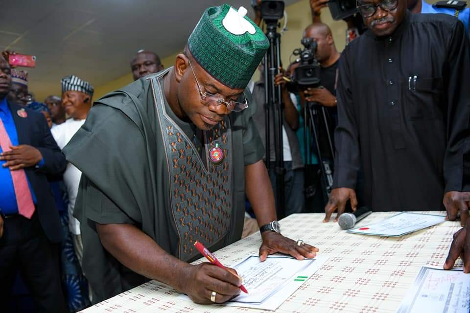 Home News KOGI: INEC issues certificate of return to Yahaya Bello (PHOTOS)