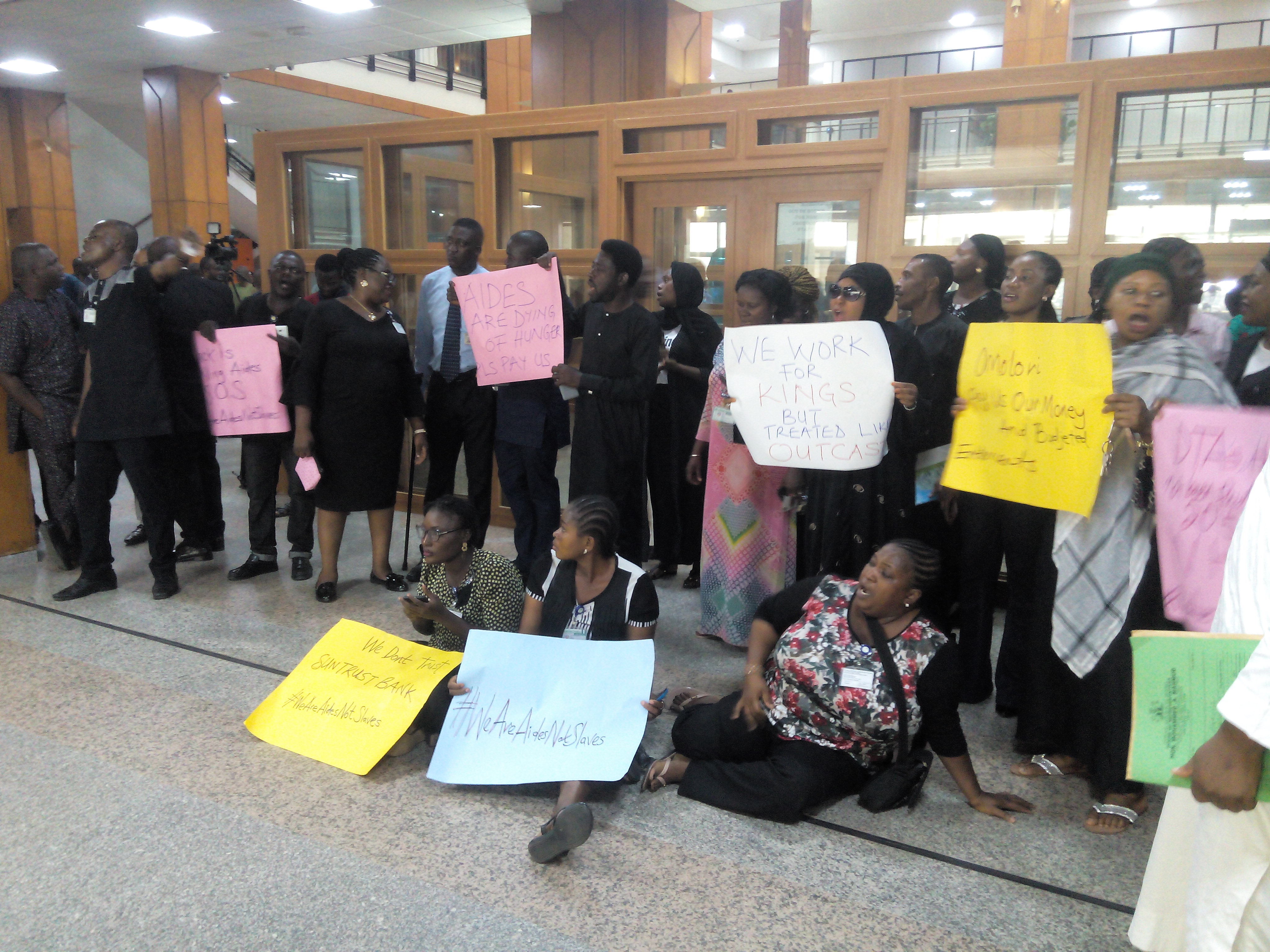They displayed placards with inscriptions which read ‘Lack is killing aides S.O.S’, ‘Omolori pay us our money’.