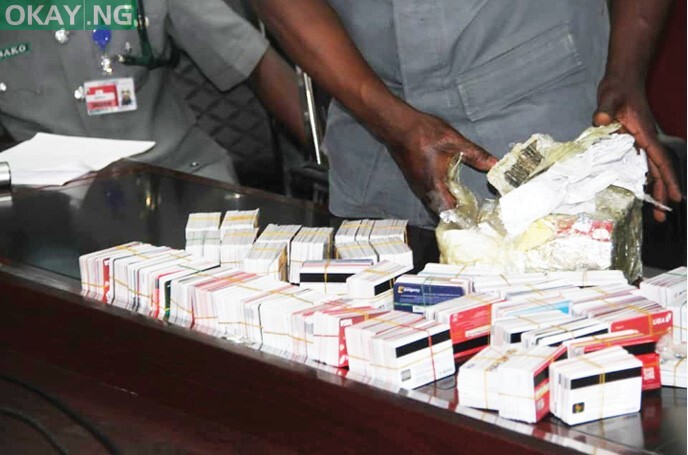 A Dubai-bound passenger, lshaq Abubakar Abubakar, has been arrested by the Nigeria Customs Service (NCS) at Murtala Muhammed International Airport (MMIA), Lagos, after being intercepted with 2,886 Automated Teller Machine cards and four Subscriber Identification Module cards concealed inside cartons of noodles.