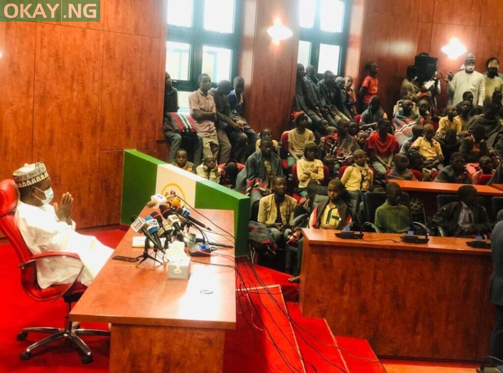 Following their release, the schoolboys arrived at the State House escorted by security operatives were they met with Governor Aminu Masari.