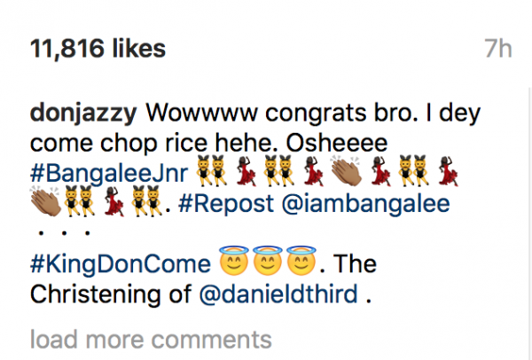 Wowwww congrats bro. I dey come chop rice hehe. Osheeee #BangaleeJnr