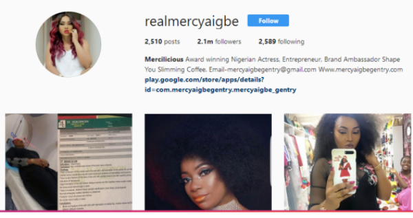 The actress edited Gentry’s name from her Instagram handle from @mercyaigbegentry to @realmercyaigbe.