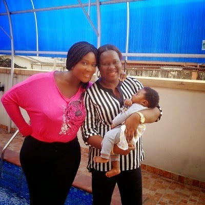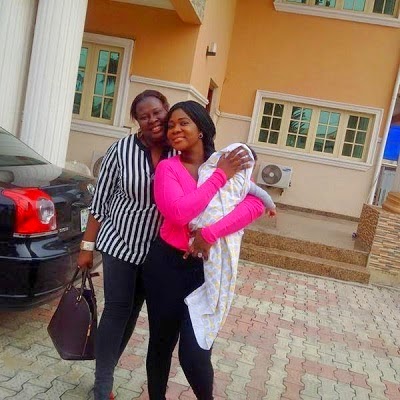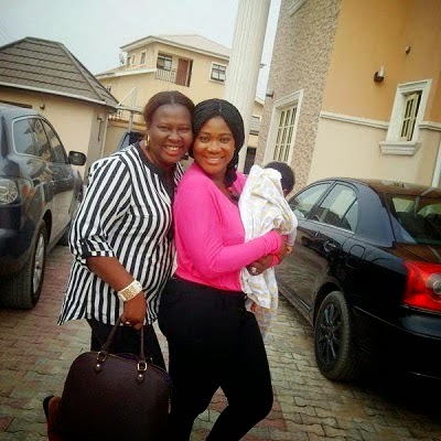 The actress and her son, Henry Okojie whom she welcomed just over a month ago in the USA, stormed a movie set where top female producer, Uche Nancy was working with actress Oma Nnadi and others.