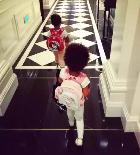 While Mikel Obi captioned his photo: “First day going to nursery school #myangels #pooh1 #pooh2 #pooh3 #pooh4”