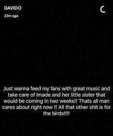 “Just wanna feed my fans with great music and take care of Imade and her little sister that would be coming in two weeks!! “That’s all man care about right now!”
