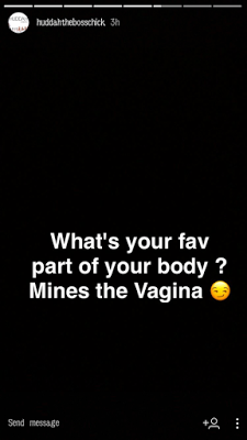 Huddah Monroe has never been one to shy away from expressing herself, and now the Kenyan socialite has attempted to send fans into a frenzy after she took to her SnapChat to declare her vagina her favourite body part.
