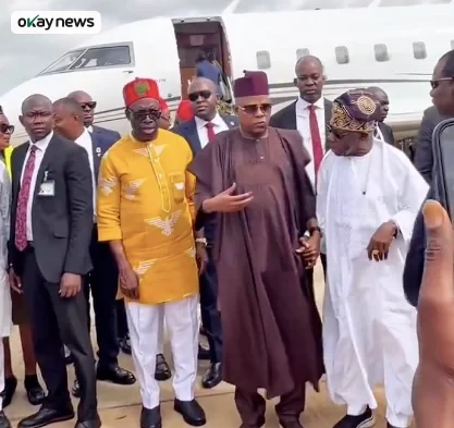 Umueri, Nigeria — High-ranking political figures in Nigeria, including current Vice President Kashim Shettima and former Presidents Olusegun Obasanjo and Goodluck Jonathan, arrived in south-eastern Nigeria on Tuesday, March 17, 2026. The dignitaries landed at the Chinua Achebe Airport in Umueri, a town in Anambra State, to attend the official second-term inauguration ceremony of the state governor, Chukwuma Soludo. Okay News reports that a video statement released by the Anambra State New Media confirmed the arrival of these key national figures. The statement noted, “Vice President Kashim Shetimma and Former President Olusegun Obasanjo arrive at Chinua Achebe Airport, Umueri, for Soludo’s second-term inauguration. Former President Goodluck Jonathan arrives at Chinua Achebe Airport, Umueri, for Soludo’s second term.”