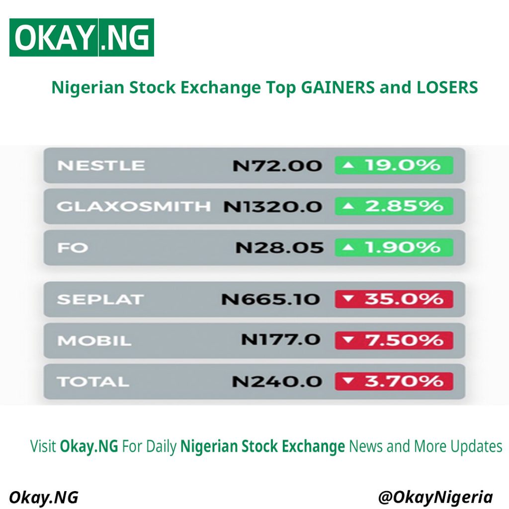 (27/3/2018) Today’s Top Market Gainers and Losers at Nigerian Stock Exchange.