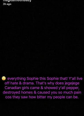 Sophia had subtly responded to a rant made by Amanda on her Snapchat, where she indirectly classified Sophia as “ Hoes ”» .