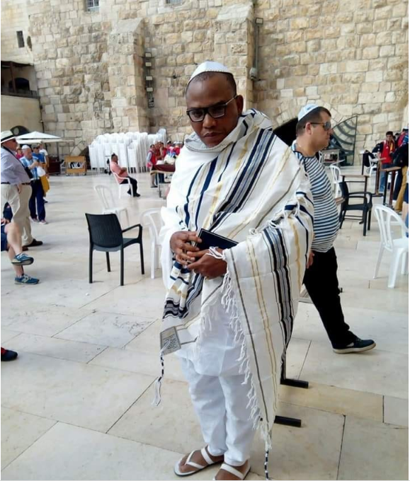In a video which surfaced online, the IPOB leader could be seen donning an Israeli outfit used for prayers while holding a book.