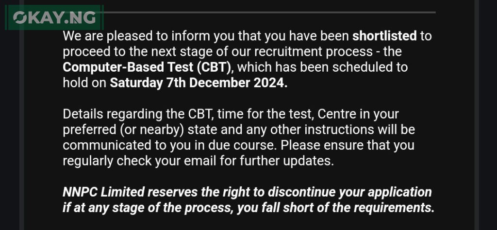 In a notification to applicants, NNPCL announced that shortlisted candidates would receive notifications via email and text messages, inviting them to the next stage of the recruitment process.