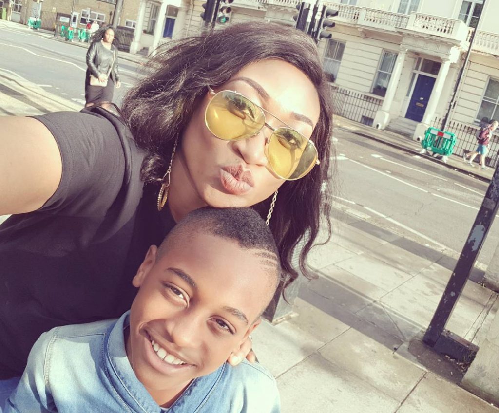 Nollywood actress Oge Okoye, who has been visiting family members across Europe, was pictured in Westminster London with her son.