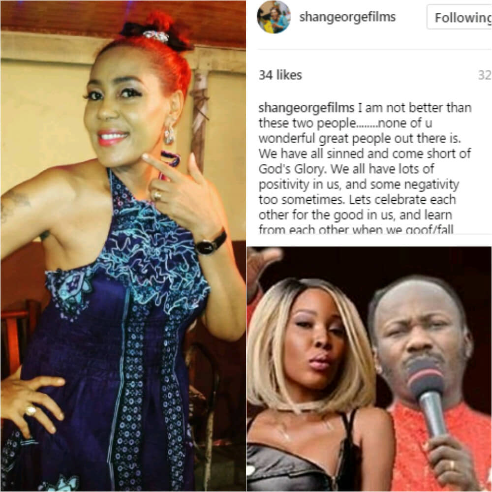 Nollywood actress, Shan George has shared her opinion on alleged sexual scandal involving the Omega Fire Ministries, OFM founder and lead pastor, Apostle Suleman and one Canada-based Nigerian lady, Stephanie Otobo.
