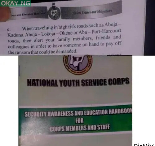 According to images shared on social media, the Security Awareness and Education Handbook for Corps Members and Staff said between pages 58 and 59 reads: