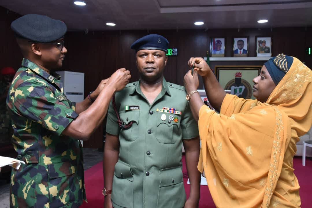 Abuja, NIGERIA — The Director General of the National Youth Service Corps (NYSC), Brigadier General Olakunle Nafiu, has decorated his Military Assistant, Shuaibu Mohammad, with the new rank of Lieutenant Colonel.