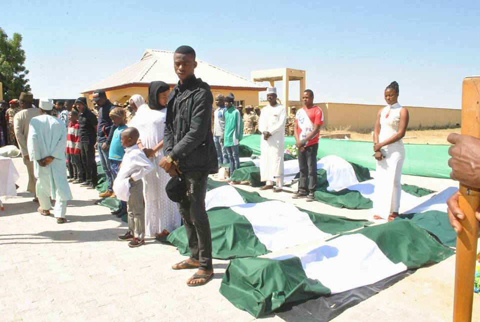 The slain army personnel were buried at the Maimalari Cantonment Cemetery Maiduguri in a very solemn military ceremony this morning.