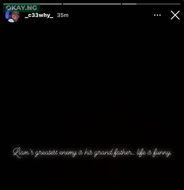 In a now-deleted post on her Instastory on Wednesday, Omowunmi alleged that Liam’s “greatest enemy” is his grandfather, Joseph Aloba. “Liam’s greatest enemy is his grandfather. Life is funny,” she wrote.