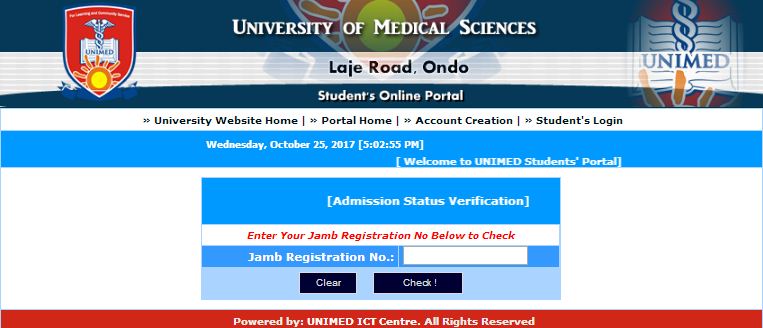-Visit https://www.unimed.edu.ng/portal/admission_status.php