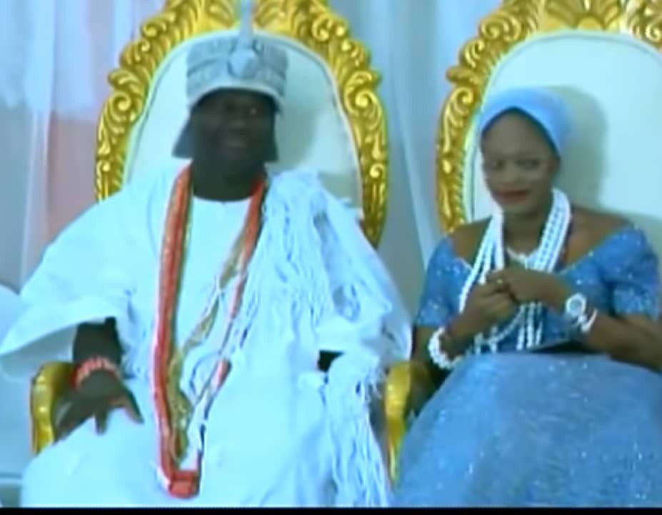 The Queen looked elegant in her blue and white ensemble, a clear difference from the Ooni’s former wife, Olori Wuraola who was always wearing white while their marriage lasted.