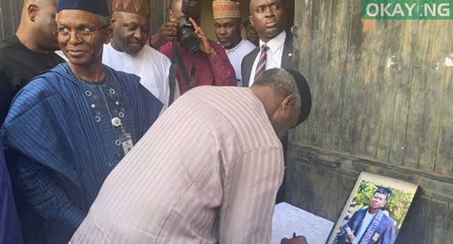 Osinbajo during the visit to the Owolabi’s family in Zaria, Kaduna state, urged them to “take heart”, adding that the loss of the corps member would never be forgotten.
