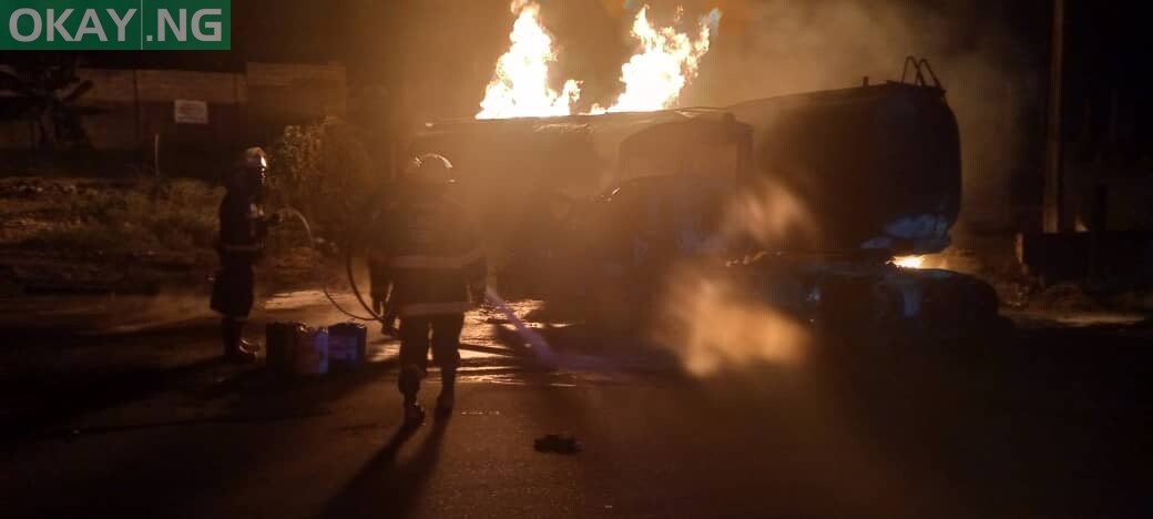 It then collided with a tanker loaded with 33000 litres of PMS which resulted in fire outbreak.