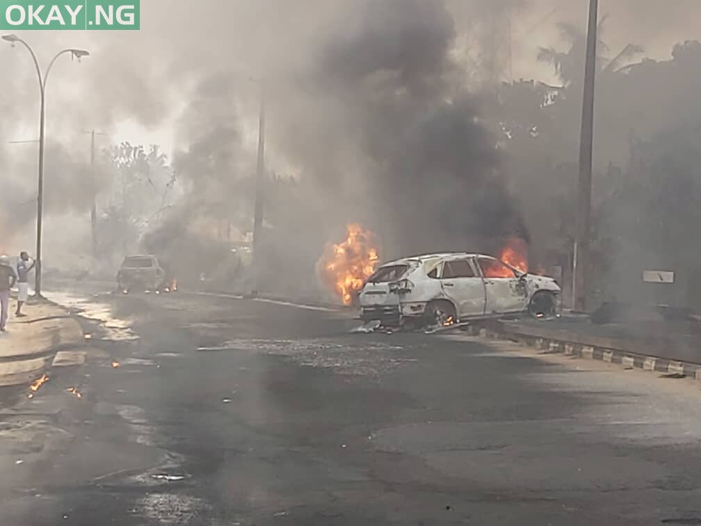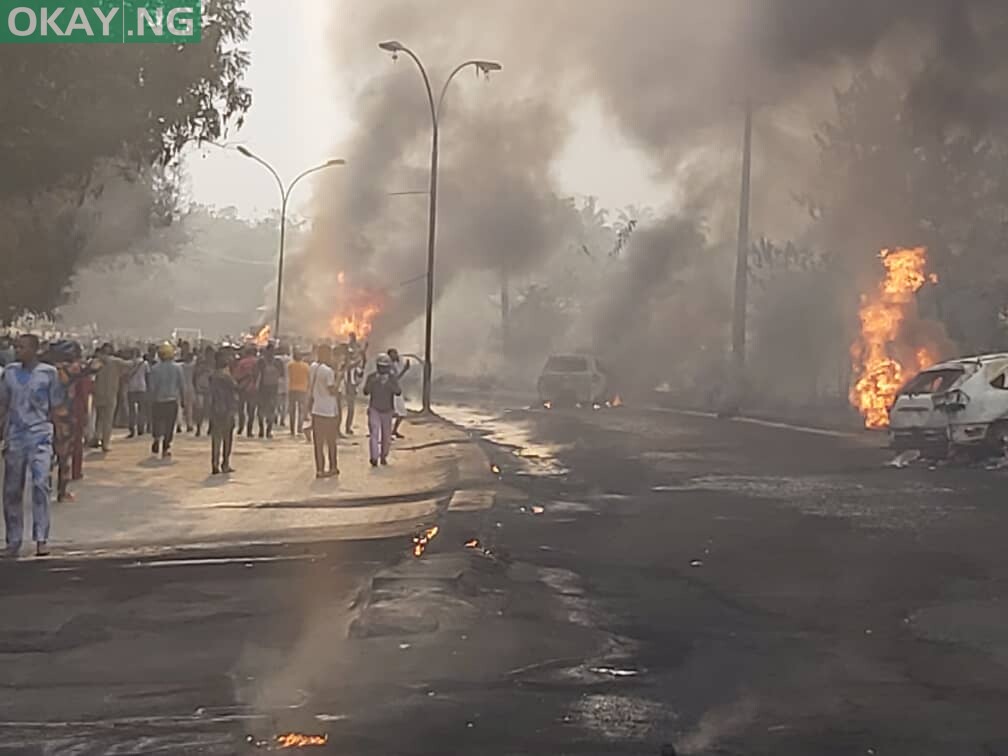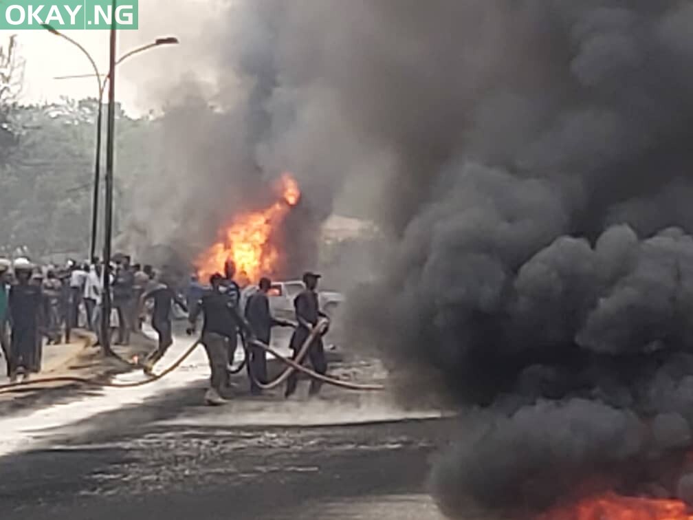 The fire which spread to a few offices around the place caused panic as many motorists started making reverse to avoid being caught up in the explosion.