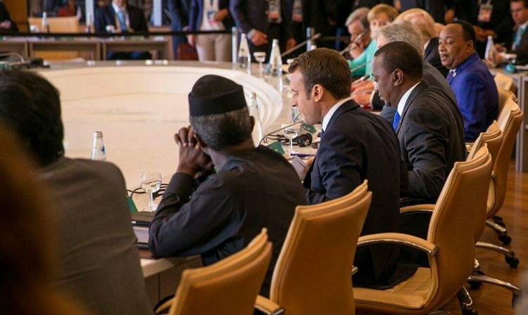 The acting president used the opportunity to congratulate French President-elect, Emmanuel Macron whom he sat beside in the meeting.