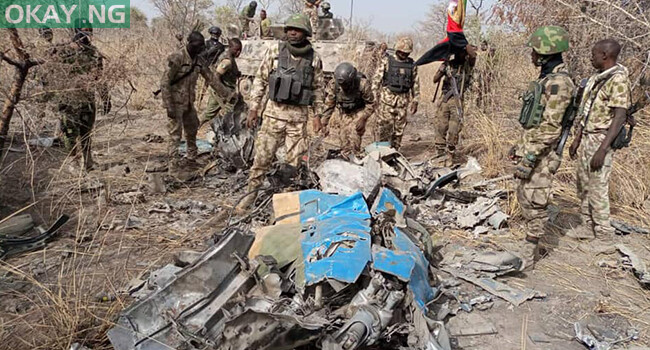 The statement reads: “Troops of Operation Desert Sanity on clearance patrol in Sambisa Forest, Borno State, have uncovered the wreckage of crashed Alpha Jet aircraft (NAF475) that went off the radar with 2 crew members on 31 March 2021.