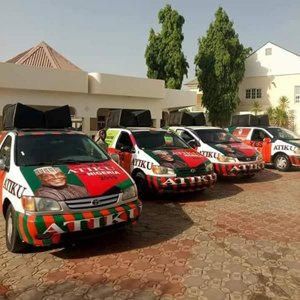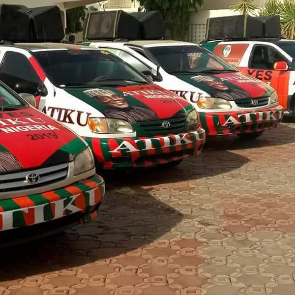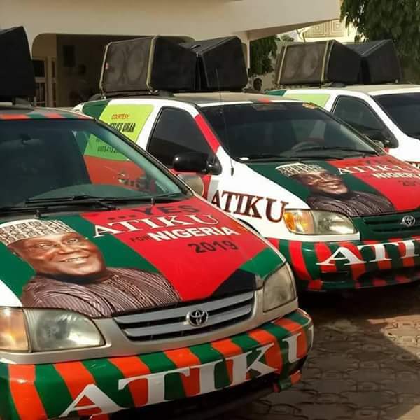 Few days after defecting from the All Progressives Congress, APC, campaign vehicles of the former vice president Atiku Abubakar has emerged online with the logo of the Peoples Democratic Party (PDP).