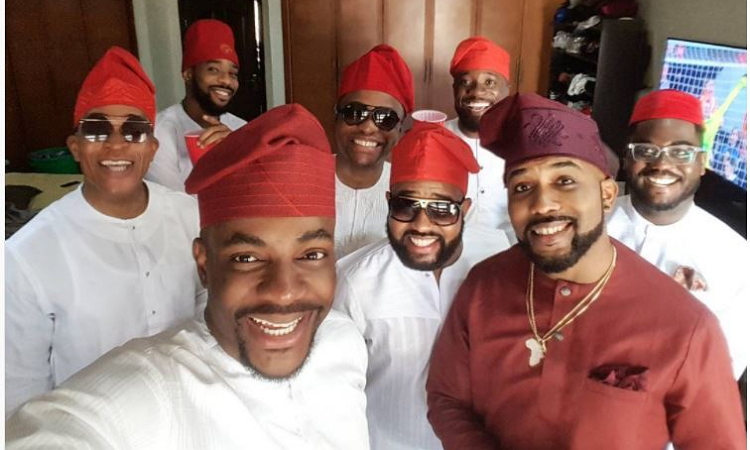 Banky W took selfies with his brothers; Funmi and Temi Wellington, friends; Ebuka Obi-Uchendu, Segun and Tunde Demuren, Olamide Adedeji among others as they headed out for the introductions between both families today.