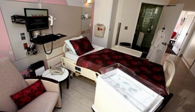 According to TMZ, Chyna is having a C -section next week at Cedars -Sinai Medical Center in L .A . where Kim and Kanye paid $4000 a night when she gace birth to her son, Saint. The maternity suite has 3 beds, 2 baths and a lounge area and complimentary robes . Photos of the suite below :