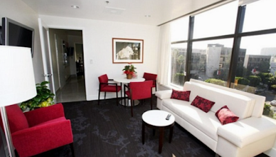 According to TMZ, Chyna is having a C -section next week at Cedars -Sinai Medical Center in L .A . where Kim and Kanye paid $4000 a night when she gace birth to her son, Saint. The maternity suite has 3 beds, 2 baths and a lounge area and complimentary robes . Photos of the suite below :